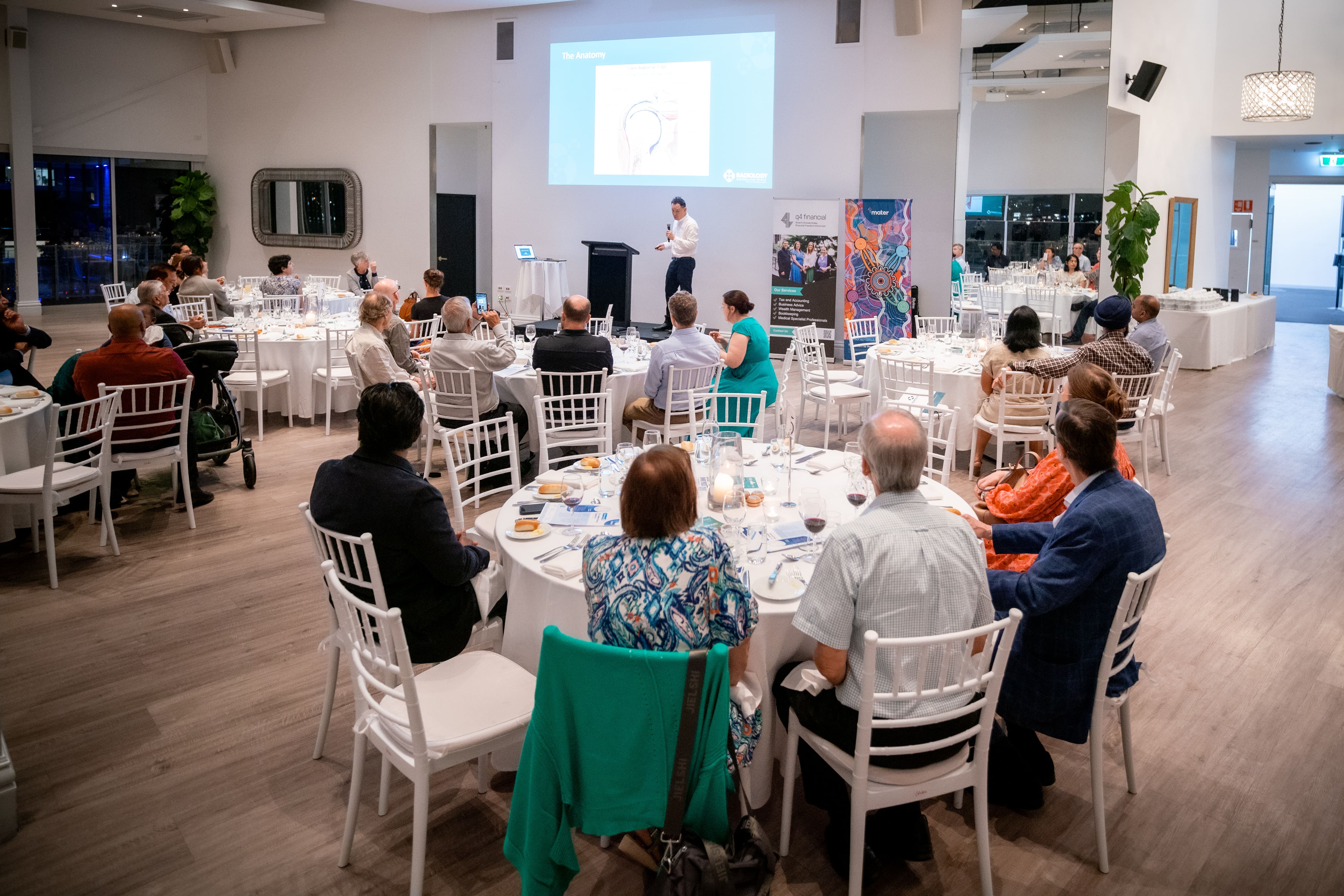We were very excited to host our October Educational Evening at Waters Edge Weddings & Events at Portside. This event was kindly sponsored by Radiology Queensland Group and we also had speakers from our key partner Mater and long term partners q4financial.